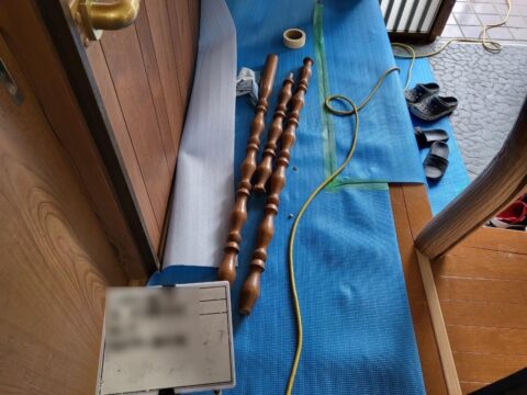 階段の格子の破損箇所を解体・撤去し、新たに階段の格子の取り付けを行ないました。